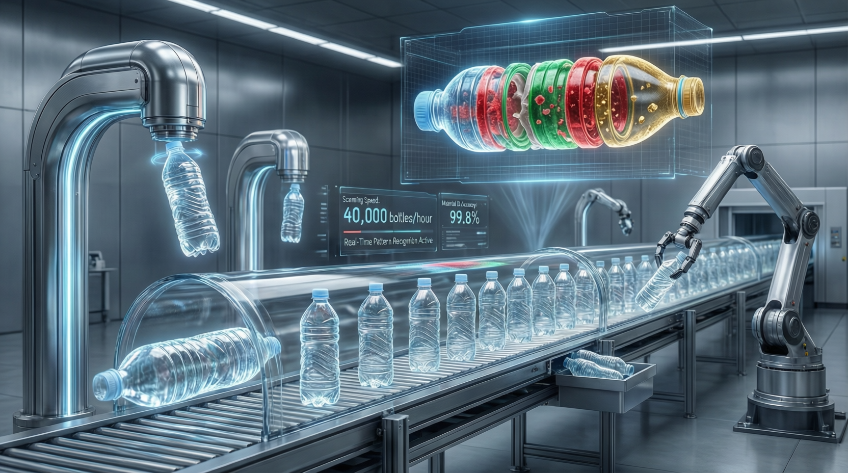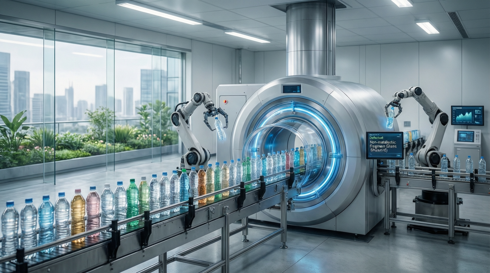 Парадокс состоит в том, что сама природа переработанного пластика создает дополнительные сложности для контроля качества. В отличие от первичного PET, rPET обладает переменной плотностью, неоднородной структурой, а часто — цветовой непрозрачностью. Традиционные методы контроля, такие как визуальный осмотр или металлоискатели, оказываются бессильны перед этой многогранной проблемой. Металлоискатели пропускают неметаллические загрязнения, а человеку физически невозможно за секунды рассмотреть внутренние дефекты в движущейся со скоростью 100 метров в минуту бутылке.