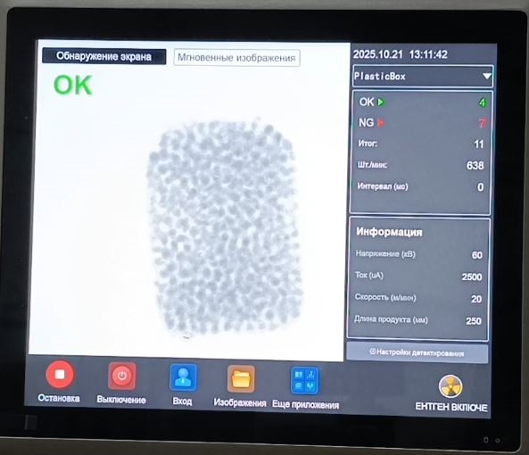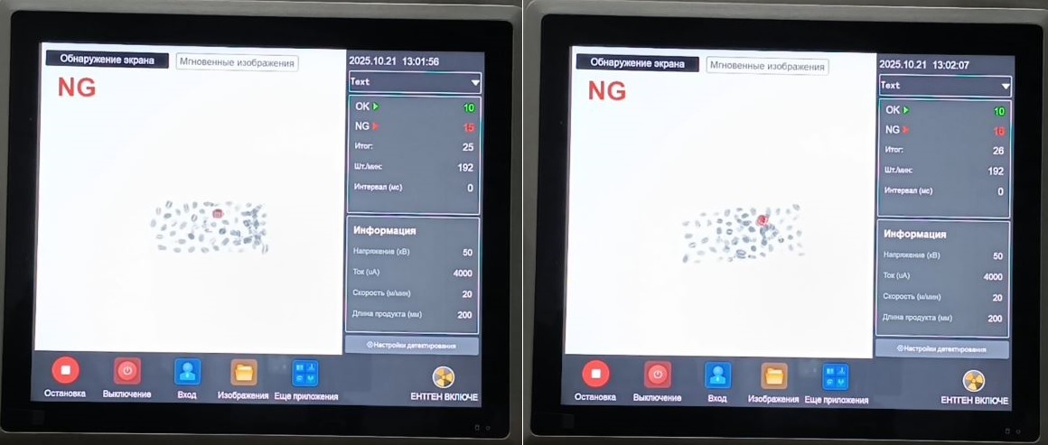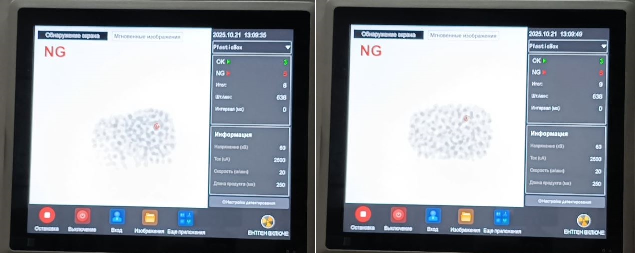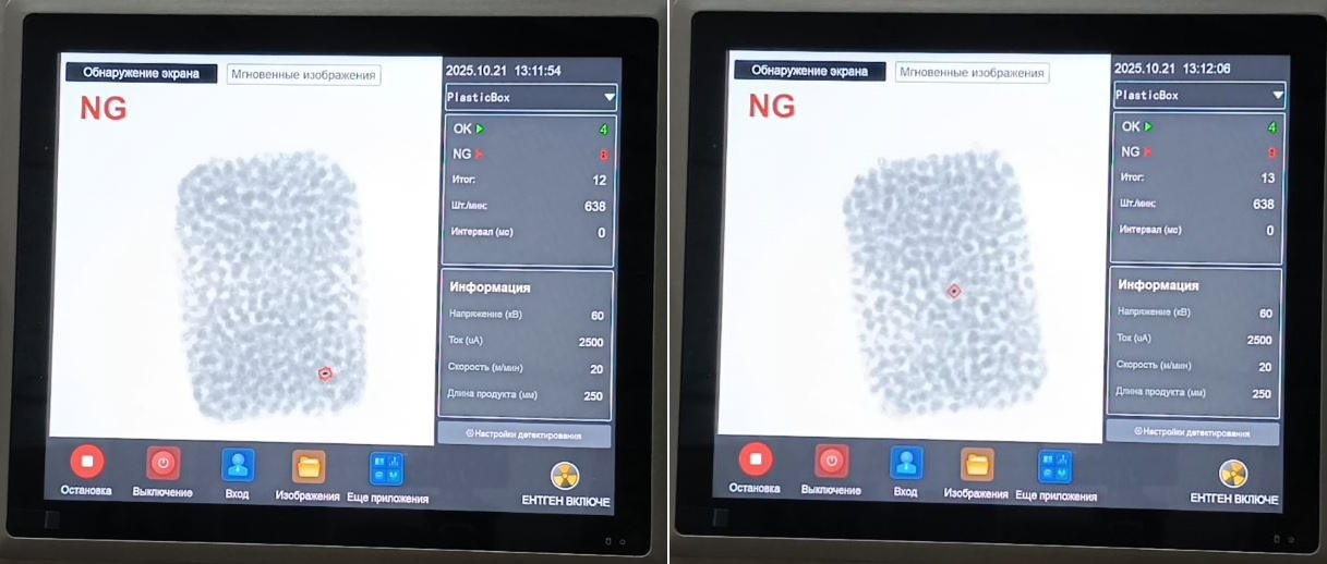 - Высочайшая чувствительность: Обнаружение мельчайших загрязнений из металла, стекла, камня, керамики, пластика определенной плотности, кости.